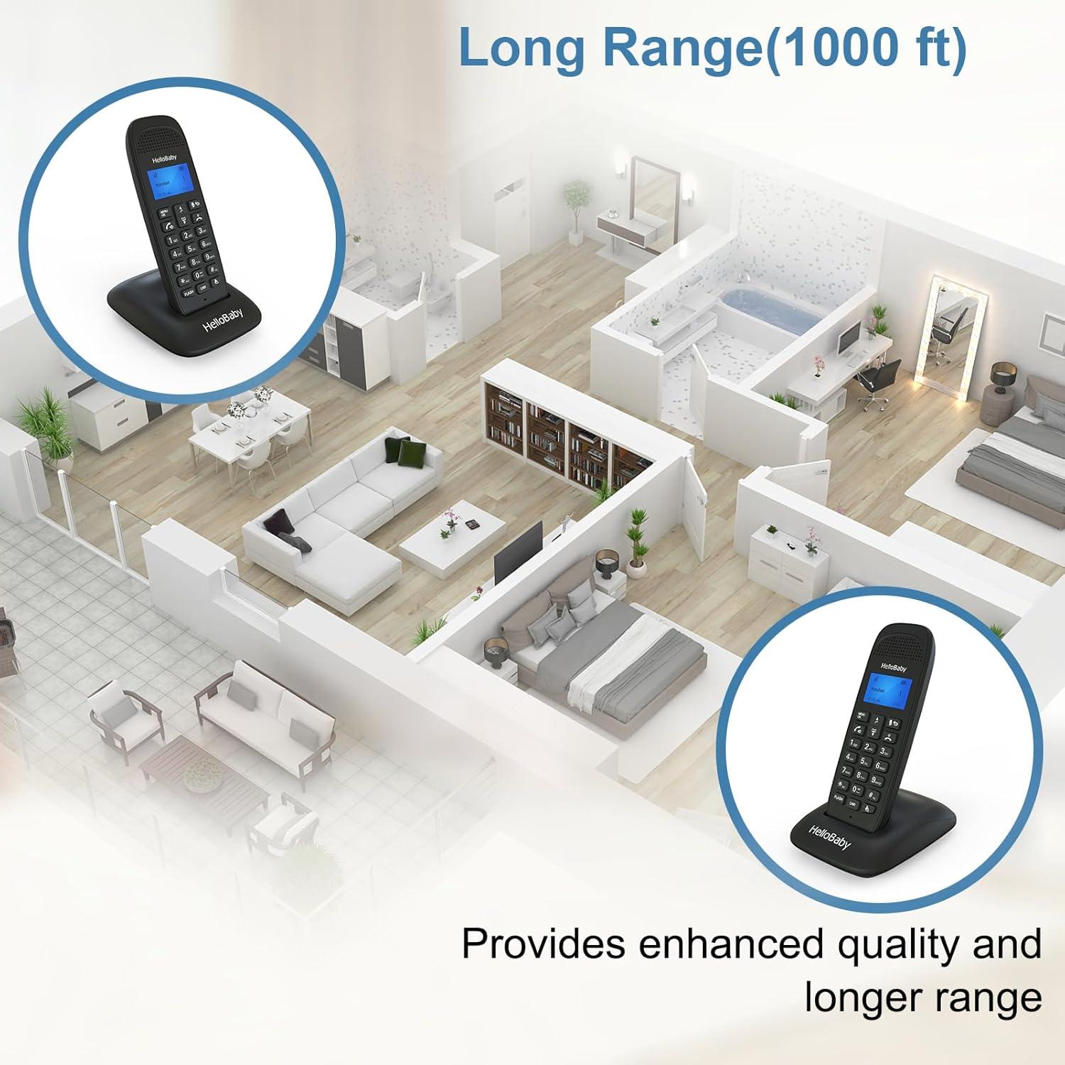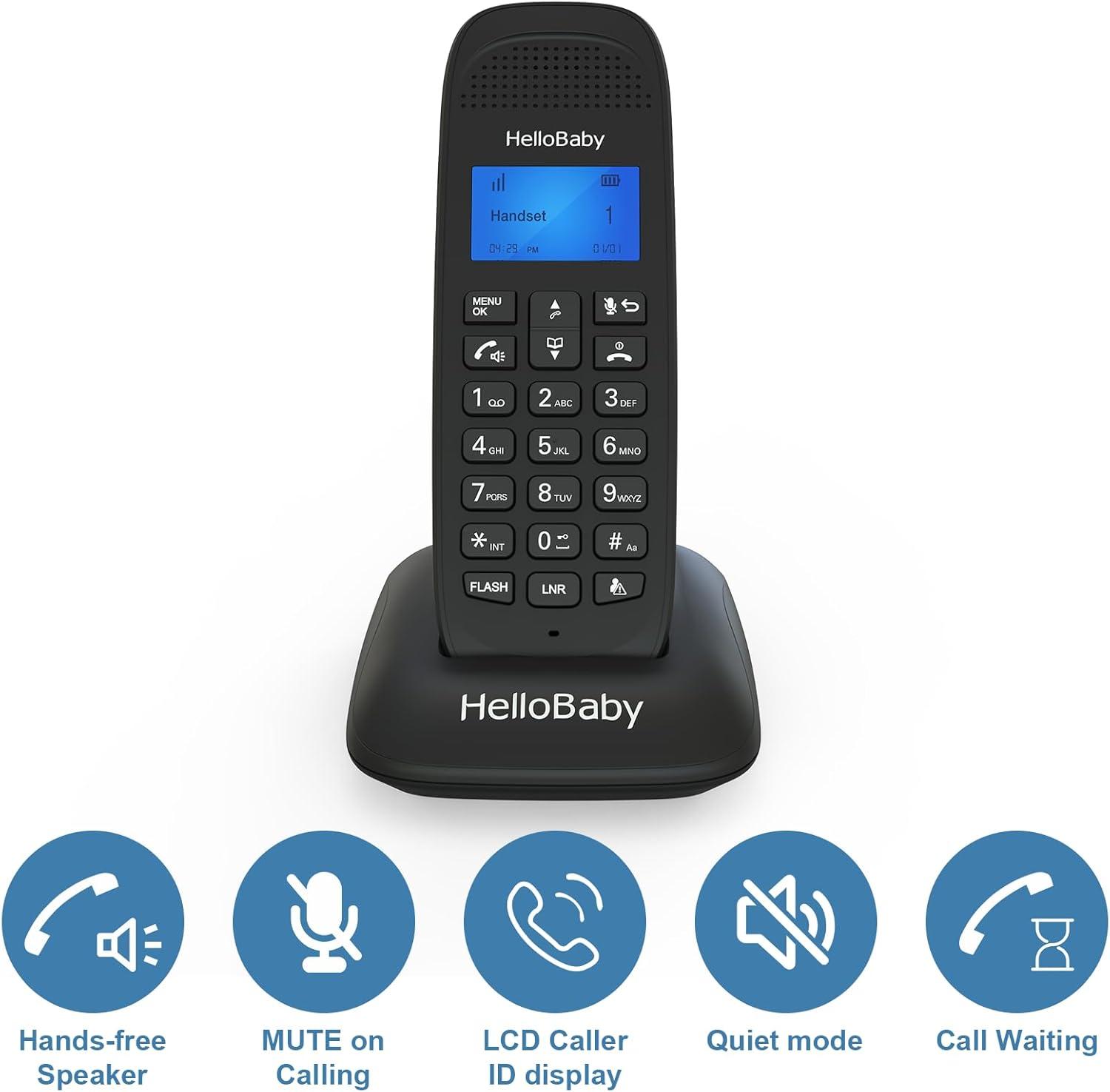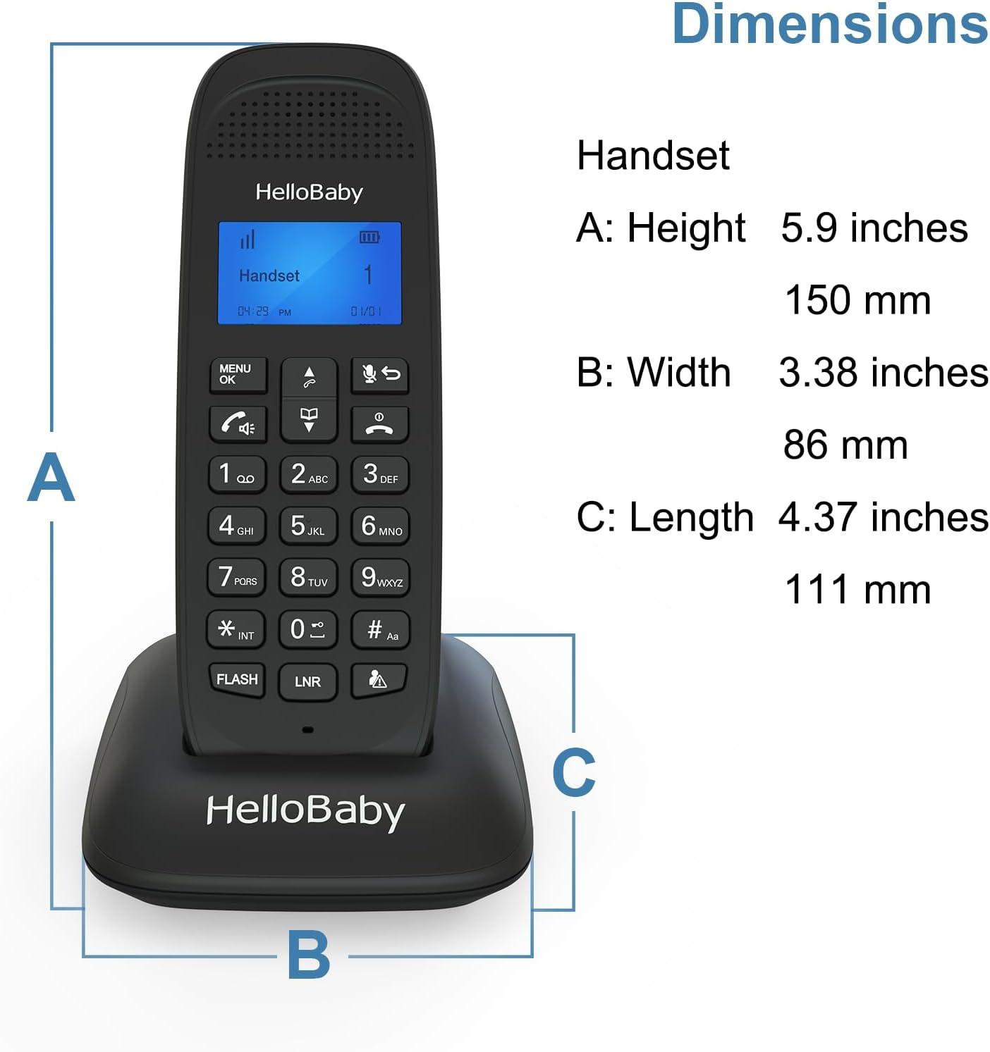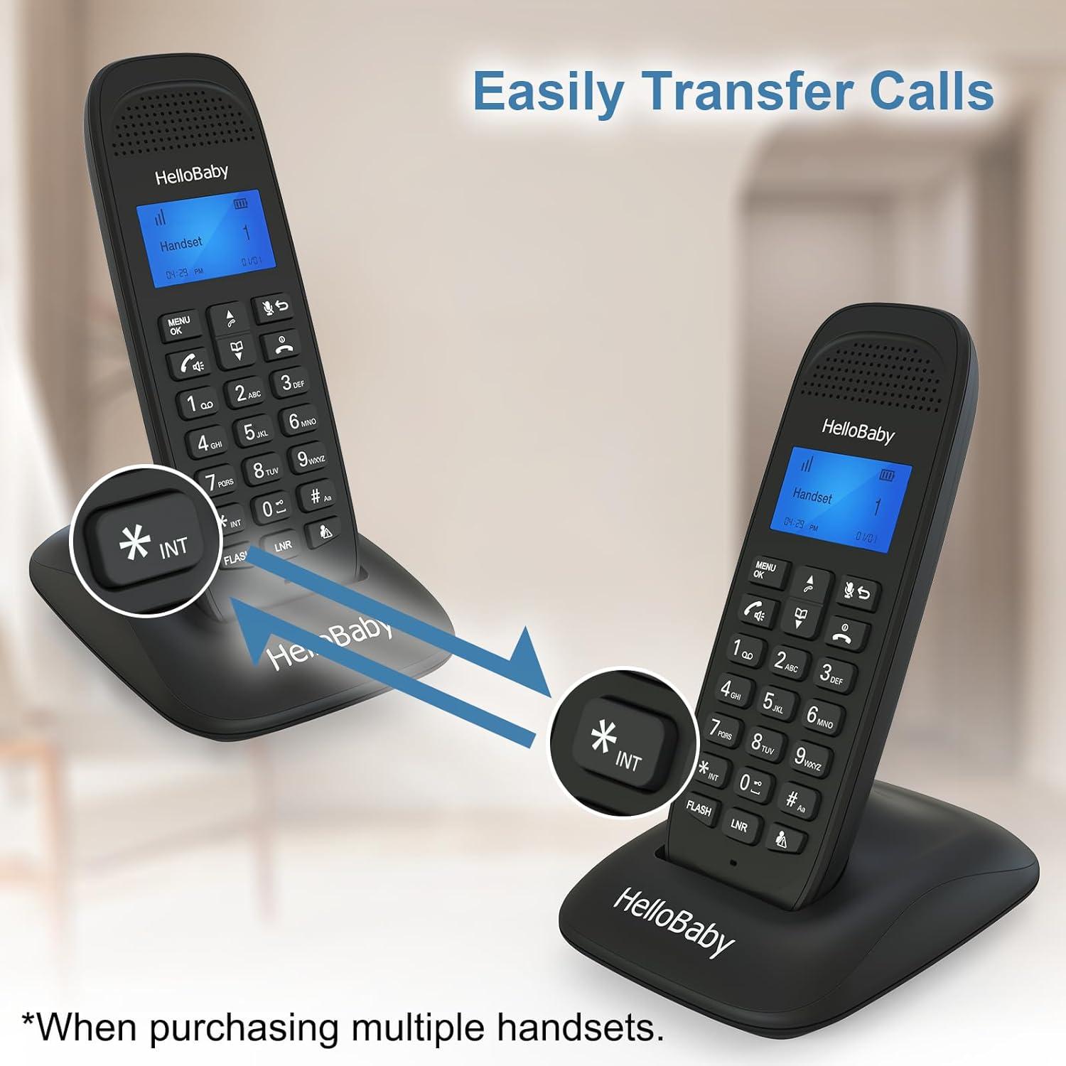 imageHelloBaby DECT 60 Cordless Phone Handset for Home with Caller IDCall Waiting Call Block FullDuplex Handset Speakerphone Blue Backlit Display ampamp Big Buttons Reliable 1000 ft RangeHB16881