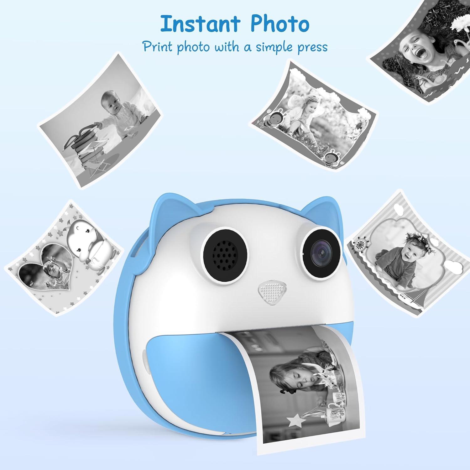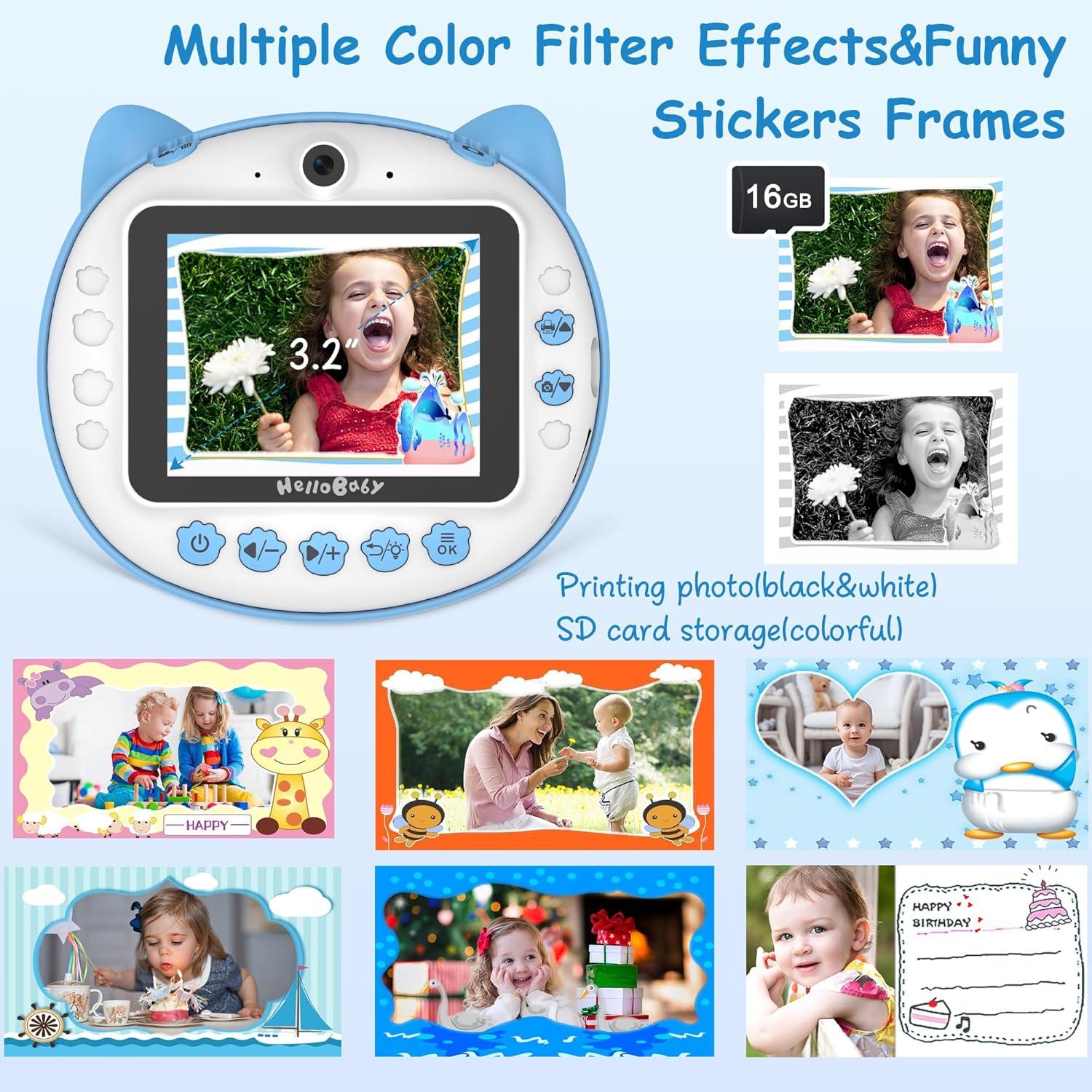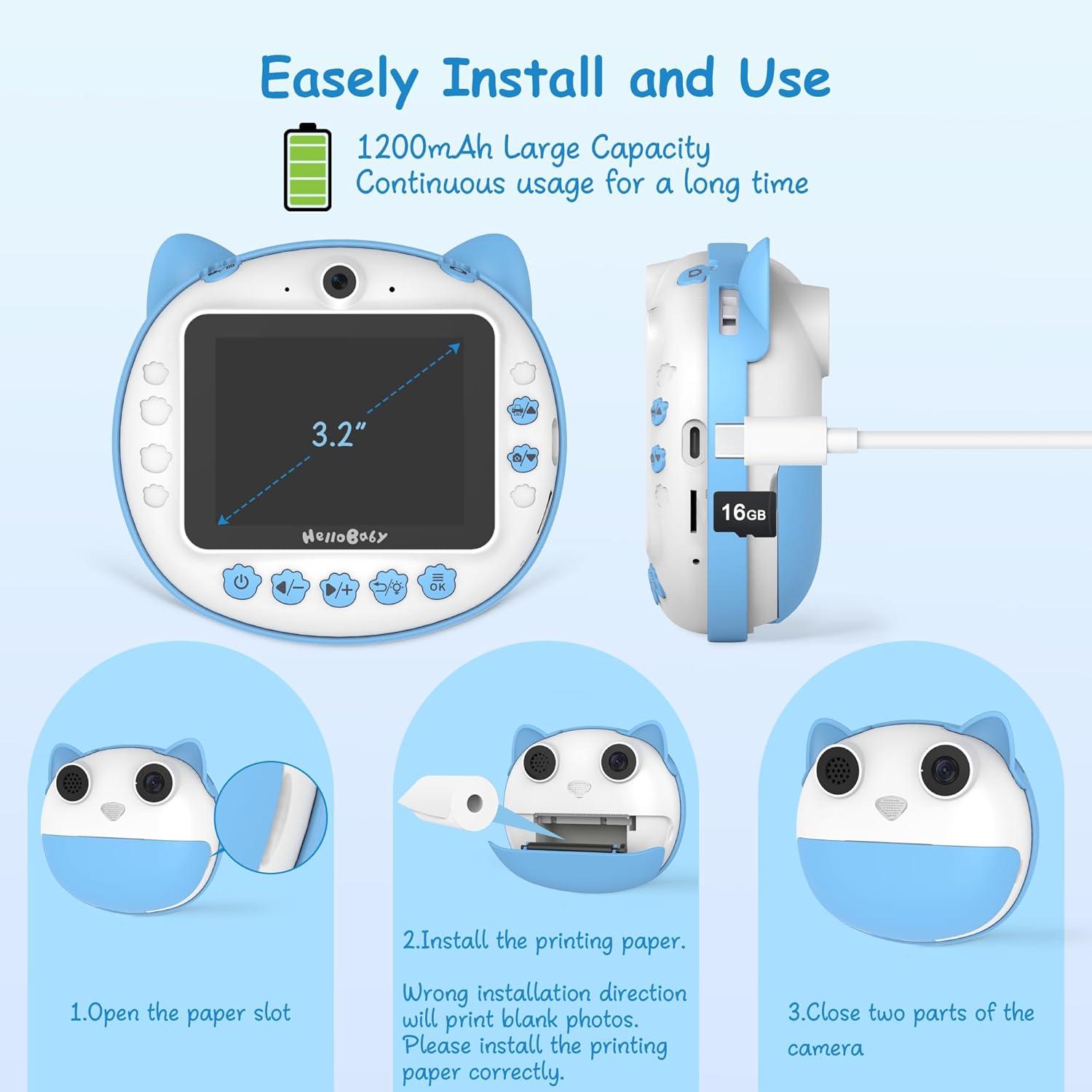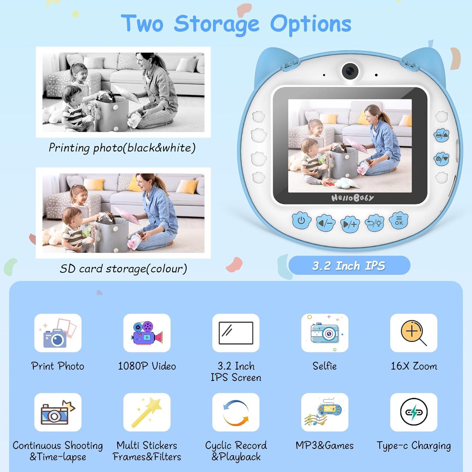 HelloBaby Instant Print Camera for Kids,3.2” IPS Screen Kids Instant Cameras,Portable Travel Camera Toy with 16GB SD Card,1080P HD Digital Video Cameras for Girls Age 3 4 5 6 7 8 9(Blue)(Blue)